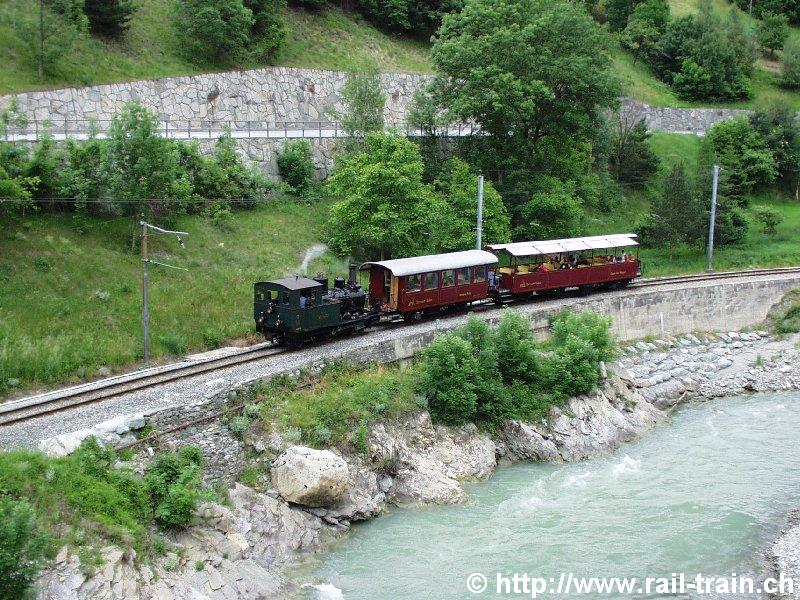 des trains à vapeur sur la ligne Brig - Visp - Zermatt La locomotive à vapeur H 2/3 7 "Breithorn" a vaillamment assuré deux allers-retours entre Brig et Stalden |