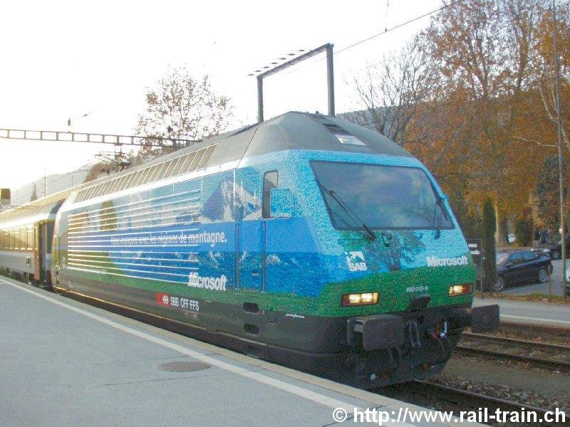 pour les régions de montagnes. Pas évident de trouver un endroit idéal pour faire une photo au mois de novembre. Mais la gare de Sierre s'y prête volontiers... comme par exemple vers 16h15 avec l'IR 325 en direction de Milano. |